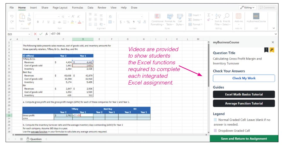 for a seamless integration of Excel within myBusinessCourse. Faculty can assign homework through
