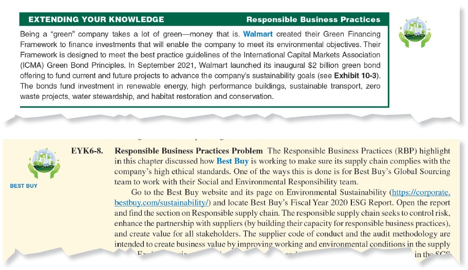 Increasingly, companies have found that “doing good” leads to a more successful, profitable enterprise. Today’s students are very engaged in the ESG movement, and we have incorporated Responsible Business Practices boxes and assignments to help students understand how corporate reporting on ESG is being embraced by forward-thinking enterprises as part of their long-term business models.