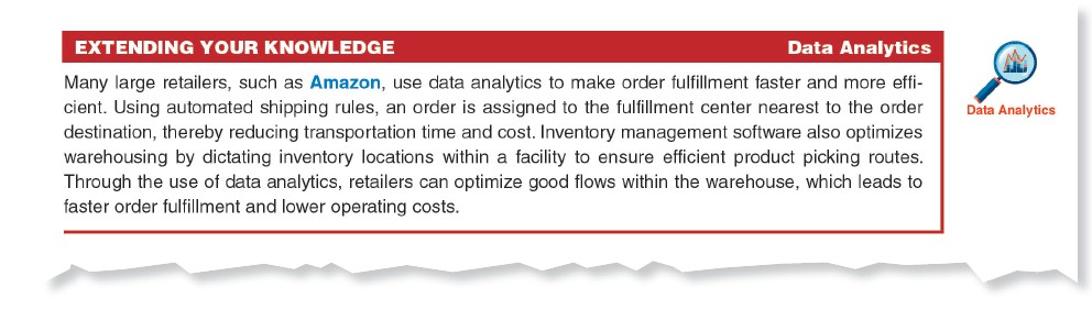 - We include Data Analytics boxes throughout the text to expose students to techniques that are used by businesses in areas related to the topic being discussed. The following box appears in the chapter on inventory.